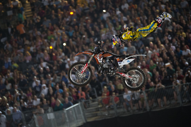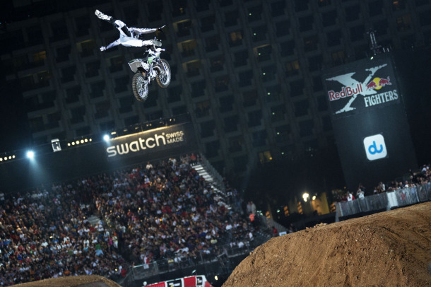 Το πρώην παιδί θαύμα του freestyle motocross και νυν πρωταγωνιστής των X-Fighters πήρε την πρώτη του νίκη από το 2010. Με την επικράτησή του ο 20χρονος Levi Sherwood έβαλε τις καλύτερες βάσεις για το έπαθλο του 1 εκατομμυρίου δολαρίων, μετά από μια σειρά άψογων εκτελέσεων που τον έφεραν στον τελικό της βραδιάς.