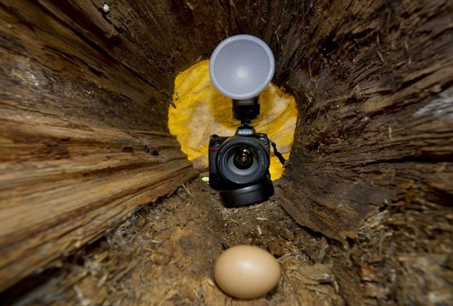 Αποφάσισε να κατασκευάσει τη συγκεκριμένη παγίδα, μιας και επί ένα μήνα η αλεπού εισέβαλε στον κήπο του προς ανεύρεση τροφής. Ο φωτογράφος λοιπόν τοποθέτησε ένα αυγό μέσα σε ένα μακρόστενο κορμό, που είχε παγιδέψει με ένα κουμπί το οποίο θα ενεργοποιούσε τη κάμερα.