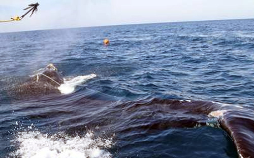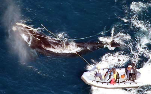 Τα δίχτυα και ο εξοπλισμός αλιείας θεωρούνται από τις βασικές αιτίες θανάτου και τραυματισμών φαλαινών και η μεγαλύτερη απειλή για την επιβίωσή τους.