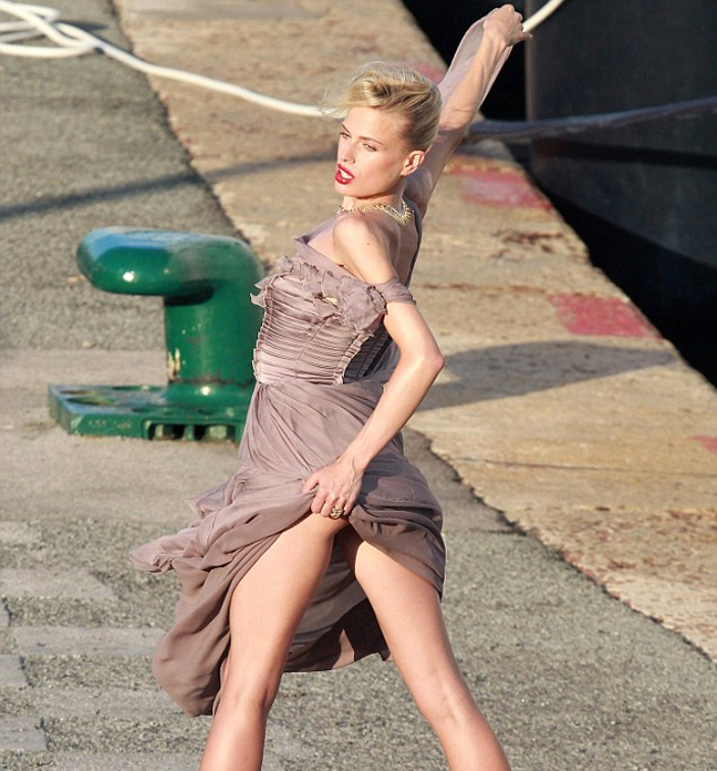 Τη σκηνή αυτή αναπαριστά η Karolina Kurkova σε μία σέξι φωτογράφιση στο St Tropez. Όμως η Karolina είπε να σηκώσει λίγο παραπάνω το φόρεμα, από ό, τι έκανε τότε η Marilyn, χαρίζοντας ταυτόχρονα ζωηρές ματιές στο φακό.