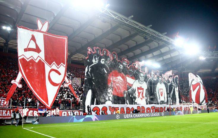 Ένα εντυπωσιακό σκηνικό δημιούργησαν οι οπαδοί του Ολυμπιακού και του Ερυθρού Αστέρα, λίγο πριν την πρώτα σέντρα στο παιχνίδι της 6ης και τελευταίας αγωνιστικής των ομίλων του Champions League.