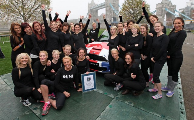 Αξίζει να σημειωθεί, ότι 23 από τις συμμετέχουσες, στριμώχτηκαν και σε ένα classic Mini, σπάζοντας ένα ακόμη ρεκόρ Γκίνες!