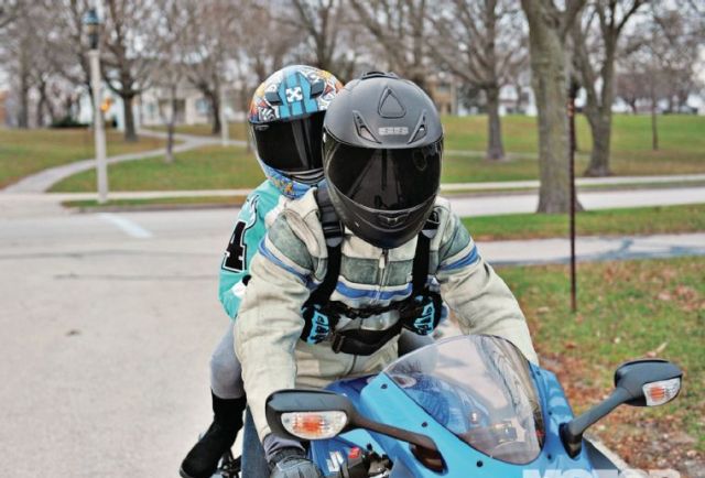 -Σε καμία περίπτωση ο συνεπιβάτης δεν πρέπει να έχει σταθερή συγκράτηση (τύπου ζώνης ασφαλείας) σε μοτοσυκλέτα. Σε περίπτωση ατυχήματος είναι πολύ επικίνδυνο αν μείνει σταθερά δεμένο με τη μοτοσυκλέτα.