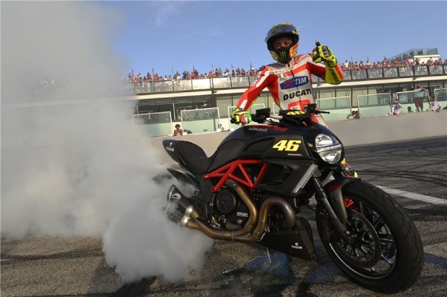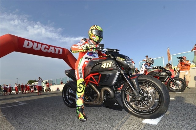 Συγκεκριμένα στην ευθεία των pit της πίστας του Misano «στήθηκαν» ανά ζεύγη οι Rossi, Nicky Hayden, Bayliss, Carlos Checa, Jakub Smrz, Sylvain Guintoli, Niccolό Canepa και Lorenzo Zanetti. Όλοι τους οδήγησαν πανομοιότυπες Ducati Diavel.