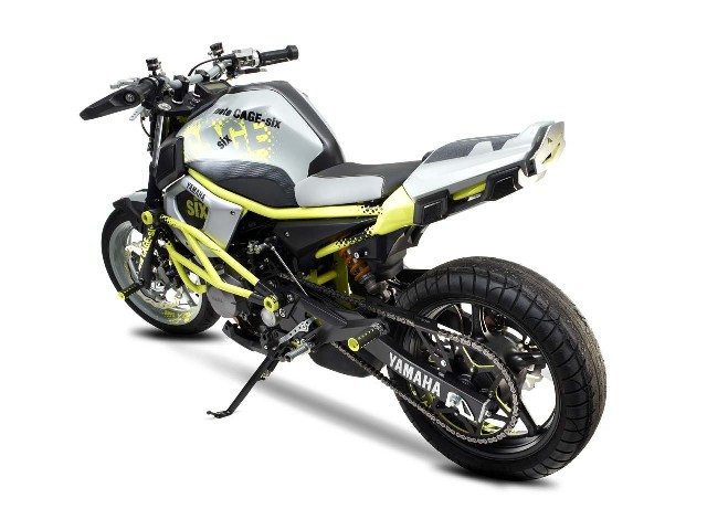Τα φρένα έχουν γίνει μαργαρίτες για αισθητικούς περισσότερο λόγους, όπως και η επιμελώς άτακτη βαφή που ορίζει την νέα ταυτότητα της μοτοσυκλέτας. Παραμένει άγνωστο πόσες XJ6 θα μεταμορφωθούν σε μοτοσυκλέτες για Stunt riding, όμως το Moto Cage-Six της Yamaha αποδεικνύει έμπρακτα πόσο μακριά από τον αρχικό ύφος μπορεί να φτάσει μία μοτοσυκλέτα με τις κατάλληλες μετατροπές.