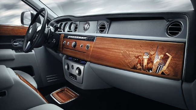 Οι παραπάνω παραστάσεις εμφανίζονται και στις γκρι δερμάτινες επιφάνειες, ενώ στο πίσω κάθισμα υπάρχουν πάνω από 6.800 δίχρωμες ραφές που συνθέτουν την εικόνα ενός ουρανοξύστη.