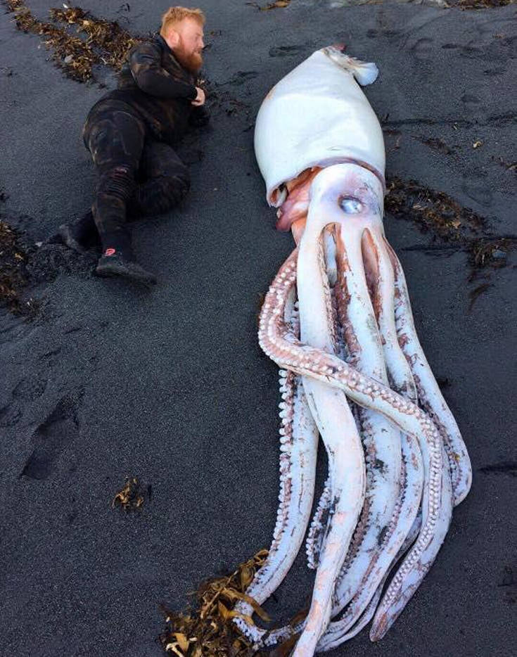 Τρία αδέρφια από το Ουέλινγκτον της Νέας Ζηλανδίας πήγαιναν τη βόλτα τους στη νότια ακτή της πρωτεύουσας όταν ξαφνικά βρέθηκαν μπροστά σε ένα απόκοσμο πλάσμα. Επρόκειτο για ένα γιγάντιο καλαμάρι που είχε ξεβράσει η θάλασσα στην παραλία! Ο Ντάνιελ, ο Τζακ και ο Μάθιου Έϊπλιν έμειναν άναυδοι από το θέαμα. Ανέφεραν μάλιστα πως παρά γεγονός ότι και οι τρεις τους είναι δύτες, δεν είχε τύχει να συναντήσουν κάτι παρόμοιο στις καταδύσεις τους.