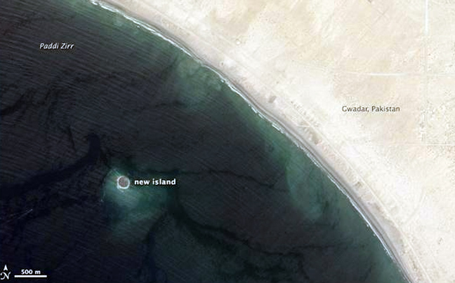 Δορυφορικές εικόνες από το νέο νησί που αναδύθηκε στα ανοιχτά του Πακιστάν μετά τον ισχυρό σεισμό των 7,7 Ρίχτερ που συγκλόνισε τη χώρα την προηγούμενη εβδομάδα και προκάλεσε εκατοντάδες νεκρούς έδωσε στη δημοσιότητα η NASA.