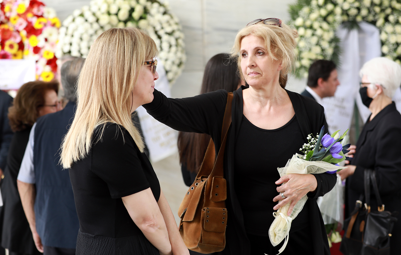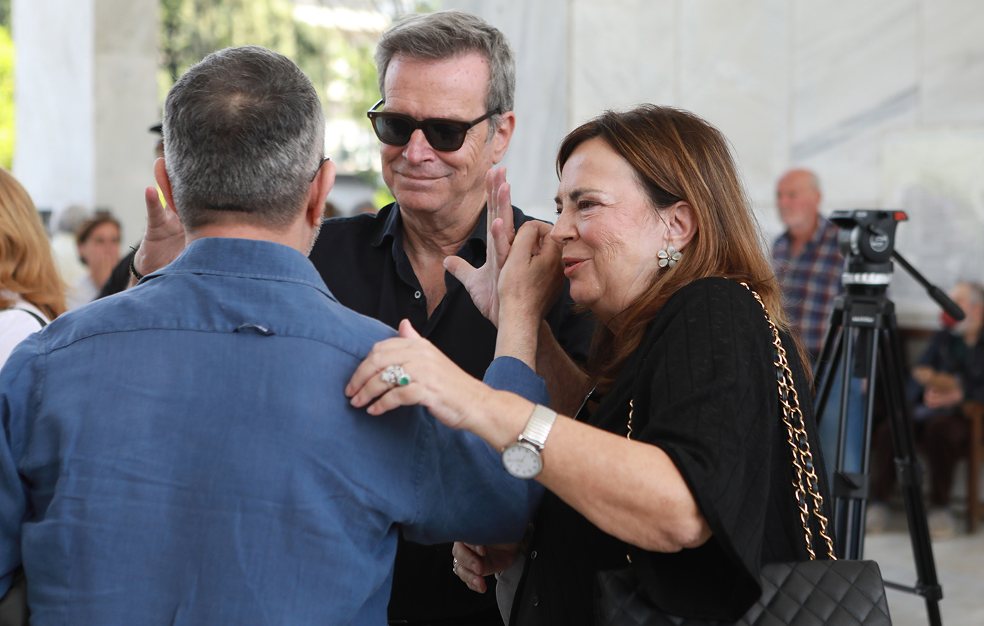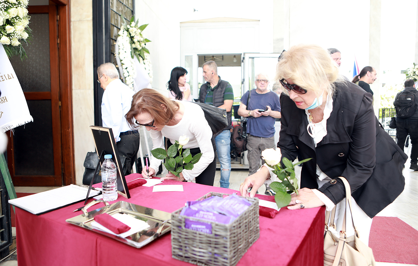 Η συγκίνηση ήταν μεγάλη, με τραγική φιγούρα τη σύζυγό του, Μαρίνα Ψάλτη, η οποία δέχθηκε συλλυπητήρια και συμπαράσταση από πλήθος ανθρώπων του καλλιτεχνικού κόσμου.