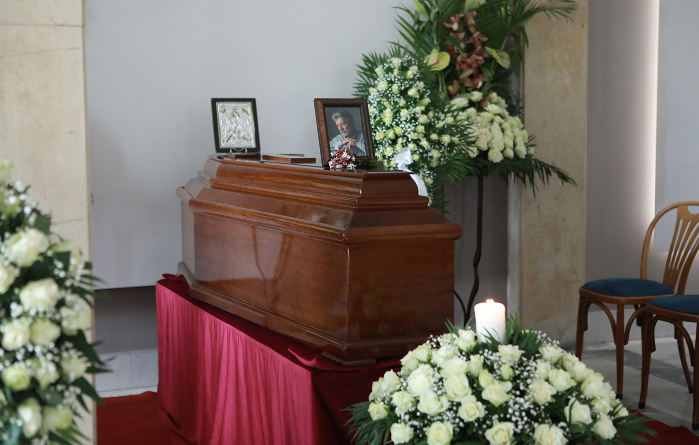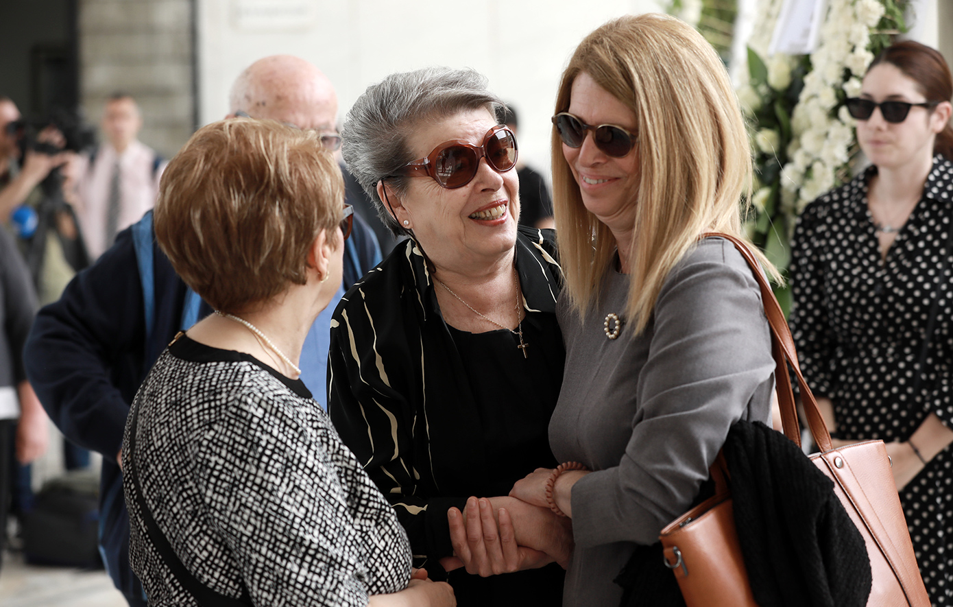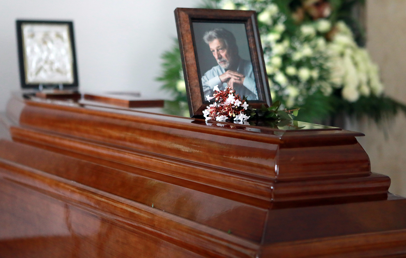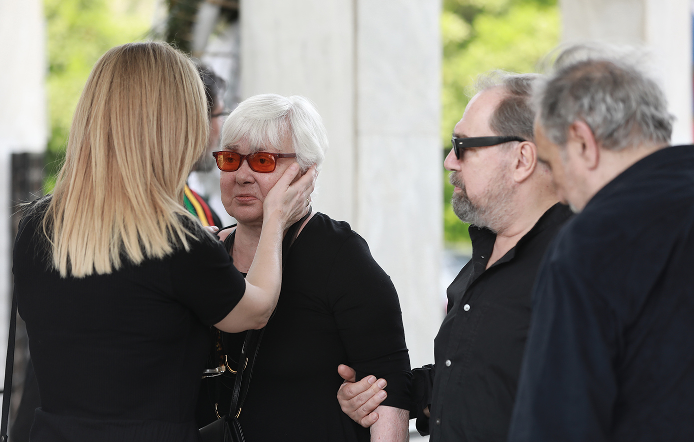 Η συγκίνηση ήταν μεγάλη, με τραγική φιγούρα τη σύζυγό του, Μαρίνα Ψάλτη, η οποία δέχθηκε συλλυπητήρια και συμπαράσταση από πλήθος ανθρώπων του καλλιτεχνικού κόσμου.