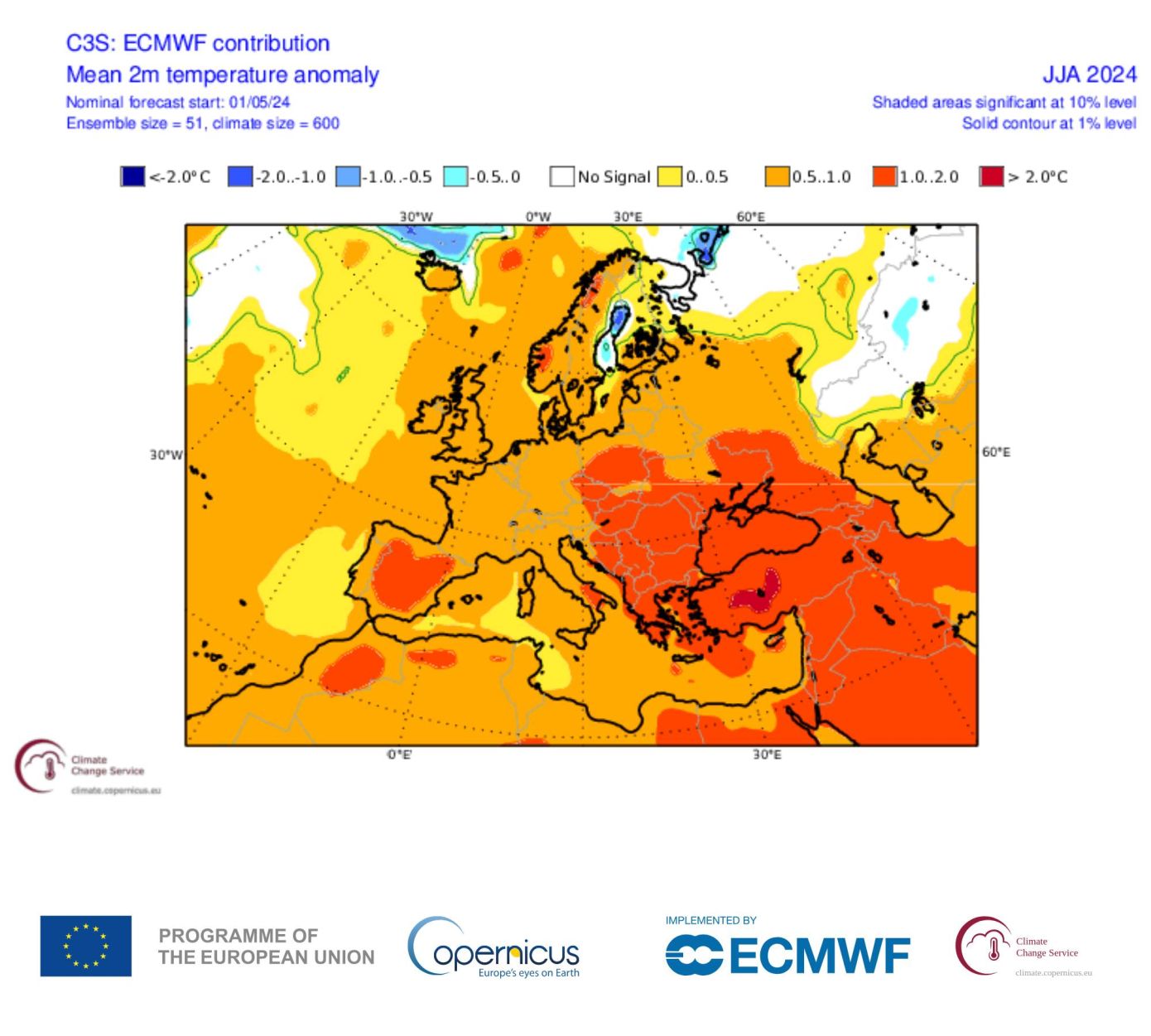 Τέλος, σχετικά με το θερμό καλοκαίρι «οι απόψεις από δύο μεγάλα ερευνητικά κέντρα το Αμερικάνικο και το Ευρωπαϊκό συγκλίνουν ότι η θερμοκρασία στην περιοχής μας αυτό το καλοκαίρι θα κυμανθεί από 0,5 έως 2 βαθμούς πάνω από τα κανονικά για την εποχή επίπεδα. Να τονίσω όμως το ποσοστό επιτυχίας των κλιματικών μοντέλων δεν είναι πάρα πολύ καλό.