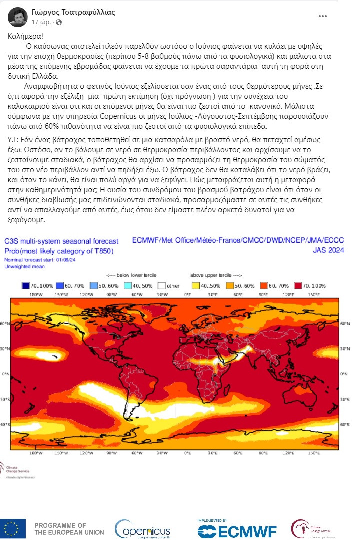 Στη συνέχεια ο μετεωρολόγος εξηγεί τι είναι το σύνδρομο του βραστού βατράχου.