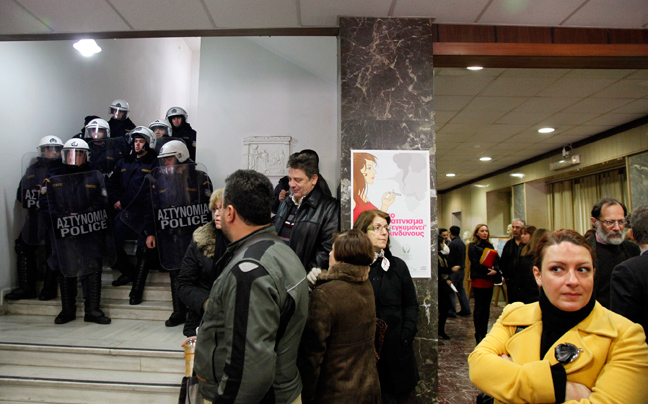 Όταν οι γιατροί επιχείρησαν να μπουν στο υπουργείο σημειώθηκε ένταση με τους άνδρες της Υπηρεσίας Μέτρων Τάξης με αποτέλεσμα μία γιατρός να τραυματιστεί και να μεταφερθεί στο νοσοκομείο με θλάση στο κεφάλι και λιποθυμικό επεισόδιο.