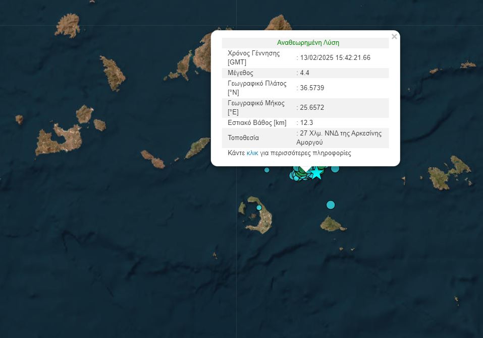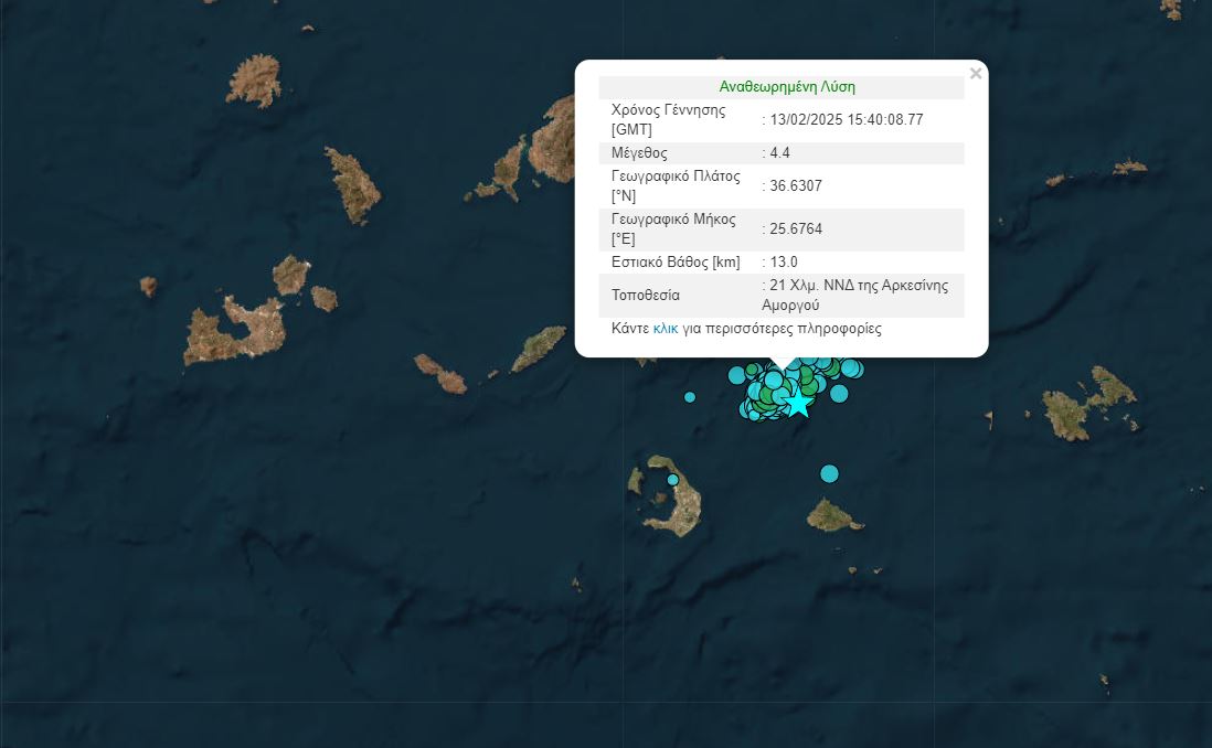 Ο δεύτερος στις 17:42 και πάλι 4,4 Ρίχτερ με επίκεντρο 27 χλμ Νότια – Νοτιοδυτικά της Αρκεσίνης Αμοργού και σε εστιακό βάθος 12,3 χιλιομέτρων.