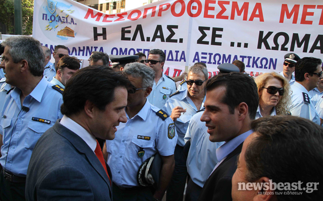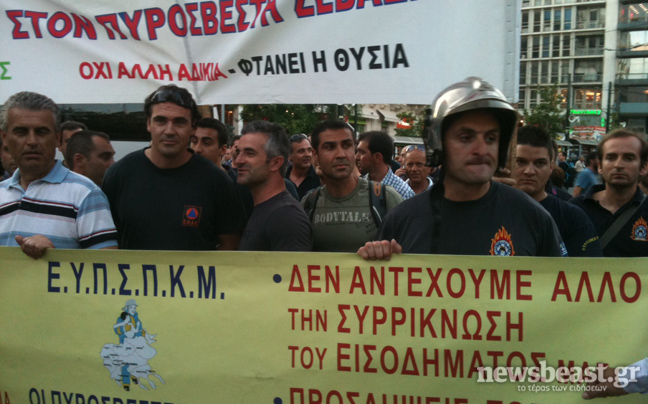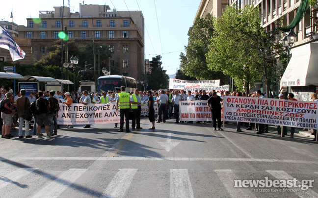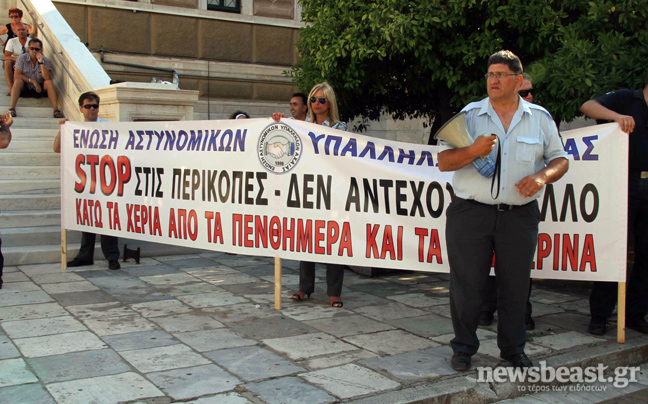 Η πορεία των ένστολων –αστυνομικών, πυροσβεστών και λιμενικών- που ξεκίνησε από την Παλαιά Βουλή κατέληξε στην «πλατεία των Αγανακτισμένων» πριν από λίγη ώρα, προκειμένου να ενωθεί με τους πολίτες που κάθε ημέρα διαδηλώνουν ειρηνικά κατά των σκληρών οικονομικών μέτρων.