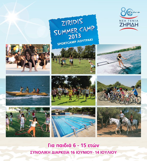 Η Νέα Γενιά Ζηρίδη διοργανώνει για ακόμα μια χρονιά το αγαπημένο Ziridis Summer Camp, που φέτος θα πραγματοποιηθεί στις εντυπωσιακές εγκαταστάσεις του Sportcamp, στο Λουτράκι. Μόλις μια ώρα από την Αθήνα, σε μια καταπράσινη έκταση 75 στρεμμάτων, λειτουργεί η πρώτη αθλητική παιδική κατασκήνωση και το μεγαλύτερο ιδιωτικό κέντρο άθλησης στην Ελλάδα, όπου η διαπαιδαγώγηση συνδυάζεται αποτελεσματικά με την ψυχαγωγία.