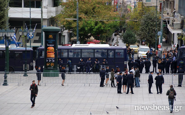 Υπό δρακόντεια μέτρα ασφαλείας διεξήχθη σήμερα η μαθητική παρέλαση για την επέτειο της 28ης Οκτωβρίου στην Αθήνα, με αποτέλεσμα το κέντρο να είναι σχεδόν άδειο από κόσμο. Οι λίγοι γονείς που μετέβησαν στο κέντρο προκειμένου να δουν τα παιδιά τους να παρελαύνουν έκαναν λόγο για «απαράδεκτη» και «γελοία» κατάσταση, εκφράζοντας παράλληλα την αγανάκτησή τους για την ταλαιπωρία τους λόγω των αυστηρών αστυνομικών μέτρων.