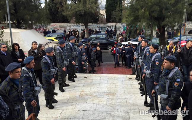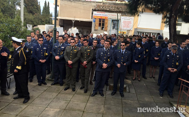 Το φέρετρο ήταν καλυμμένο με την ελληνική σημαία.