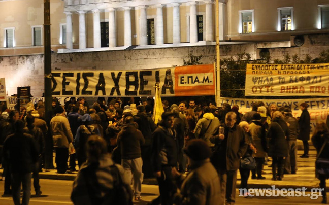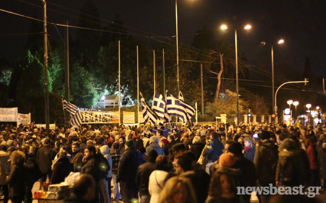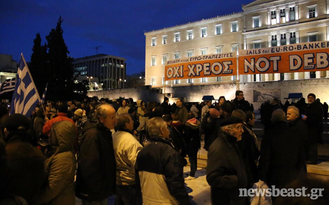 Με κεντρικό σύνθημα «Δώστε μία ευκαιρία στην Ελλάδα» για δεύτερη συνεχόμενη ημέρα πλήθος κόσμου συγκεντρώνεται στο Σύνταγμα σε νέο συλλαλητήριο κατά των πολιτικών λιτότητας και στήριξης της ελληνικής κυβέρνησης κατά τη διάρκεια των συζητήσεων στη συνεδρίαση του Eurogroup.