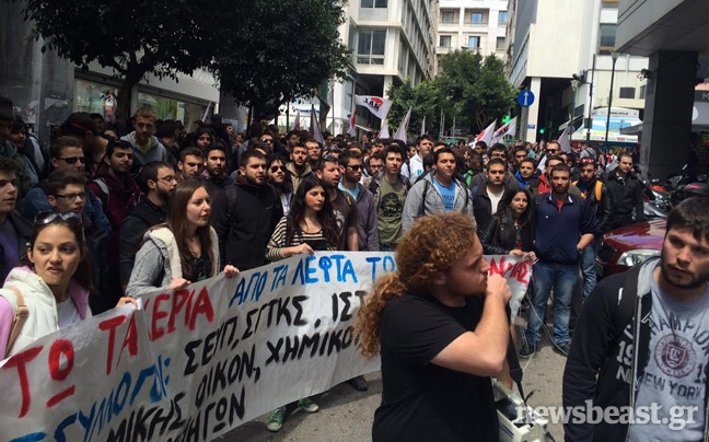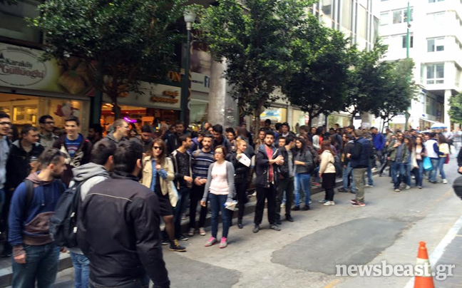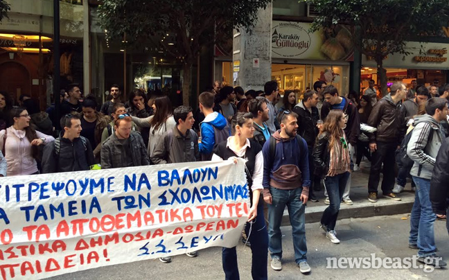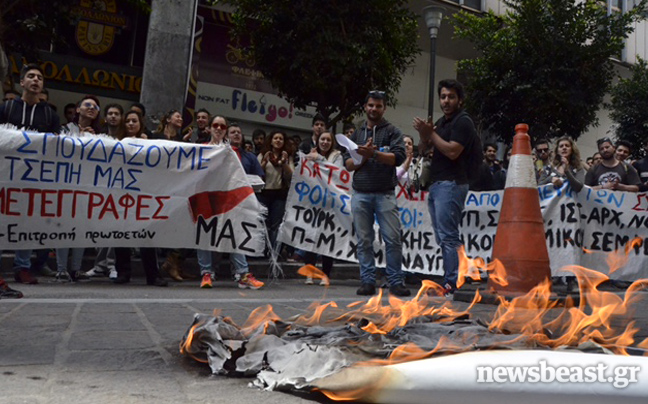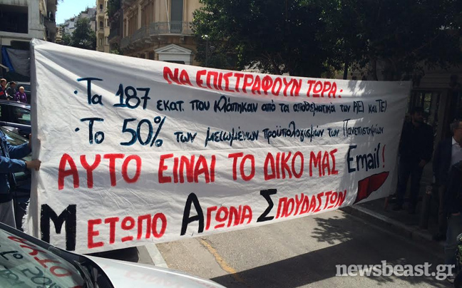 Στο υπουργείο Οικονομικών έχουν συγκεντρωθεί φοιτητές που διαμαρτύρονται για την Πράξη Νομοθετικού Περιεχομένου που αφορά τα αποθεματικά των ταμείων.