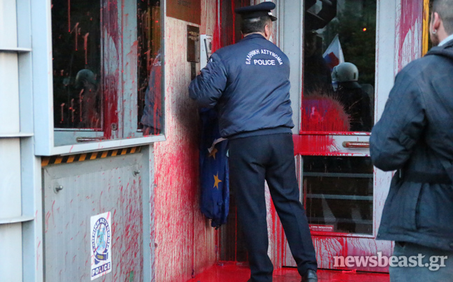 Επεισοδιακή ήταν η πορεία του ΠΑΜΕ για το μεταναστευτικό προς τα γραφεία της Ευρωπαϊκής Ένωσης στην οδό Βασ. Σοφίας.