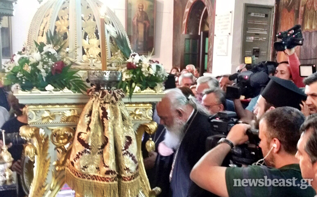 Στον Ιερό Ναό της Αγίας Βαρβάρας έφτασε ο Αρχιεπίσκοπος Ιερώνυμος για να προσκυνήσει το λείψανο της Αγίας Βαρβάρος που έφτασε από τη Βενετία στην Αθήνα.