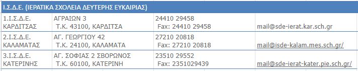 Επιπλέον, προσφέρουν στους μαθητές τους δωρεάν σίτιση και διαμονή στις κατά τόπους Εκκλησιαστικές Εστίες, με τη μέριμνα της Εκκλησίας της Ελλάδας. Για περισσότερες πληροφορίες και δικαιολογητικά σχετικά με τις εγγραφές (αίτηση υποψήφιου, απολυτήριος τίτλος, συστατική επιστολή του επιχώριου Μητροπολίτη), μπορούν να απευθύνονται στις Διευθύνσεις των Σχολείων σύμφωνα με τον παρακάτω πίνακα.