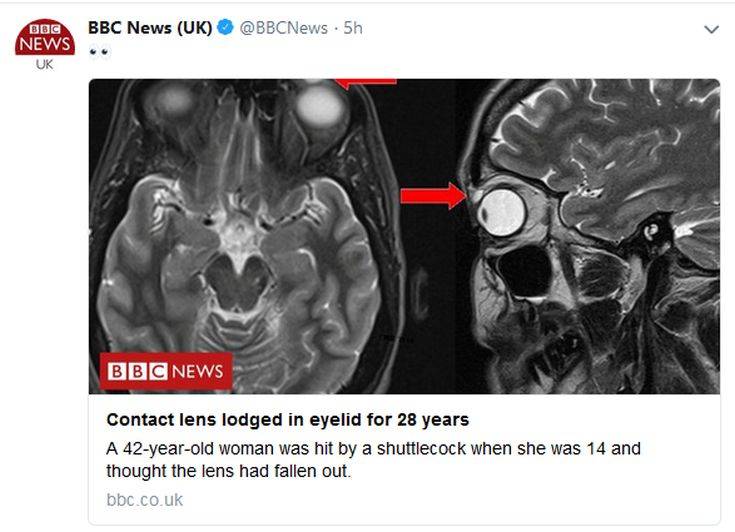 Η ιστορία έχει εξήγηση, καθώς όπως ανέφερε η γυναίκα, στα 14 της είχε τραυματιστεί στο αριστερό της βλέφαρο από μπαλάκι της αντιπτέρισης (μπάντμιντον) και τότε είχε συμπεράνει πως ο φακός επαφής που φορούσε είχε βγει από το μάτι, αλλά δεν κατάφερε να τον εντοπίσει.