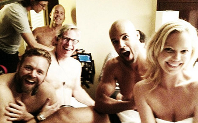 Η όμορφη ηθοποιός όχι απλώς δεν είχε τρακ, αλλά έβγαλε και μια φωτογραφία μετά το τέλος της σκηνής. Ημίγυμνη και με ένα σεντόνι να καλύπτει μόνο το σώμα της η 35χρονη Χέιγκλ το διασκέδασε.