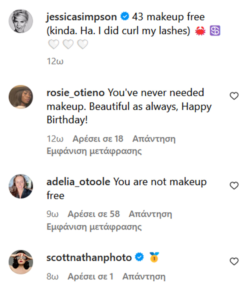 Τα 43α γενέθλιά της γιόρτασε η Τζέσικα Σίμπσον, με την ίδια να μοιράζεται μια φωτογραφία της στο Instagram χωρίς μακιγιάζ. Ή τουλάχιστον έτσι ισχυρίστηκε, κάτι που μάλλον δεν ίσχυε όπως διαπίστωσαν τα 6,3 εκατομμύρια followers της.