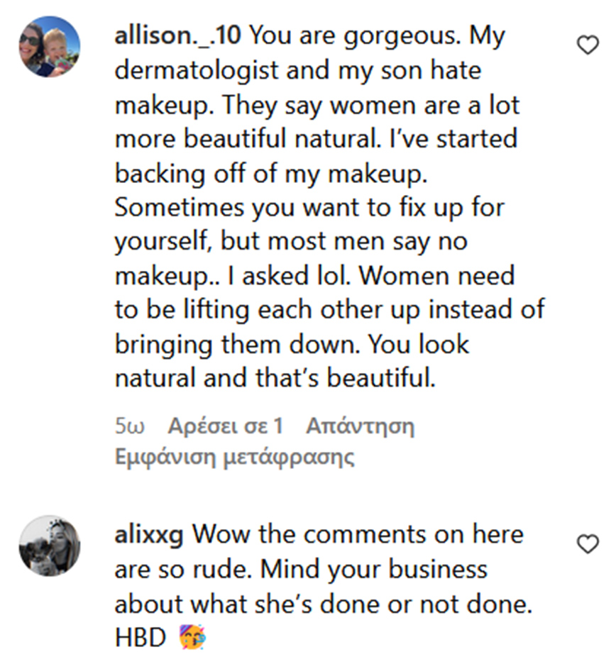 Στα περισσότερα από τα σχόλια, της επισημαίνουν όλα τα σημεία του προσώπου της που είναι βαμμένα και τονίζουν ότι «δεν είναι ειλικρινής».