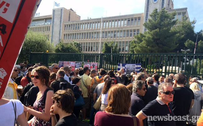 Έξω από το Ραδιομέγαρο έχουν συγκεντρωθεί εργαζόμενοι της ΕΡΤ, έπειτα από κάλεσμα της ΠΟΣΠΕΡΤ.