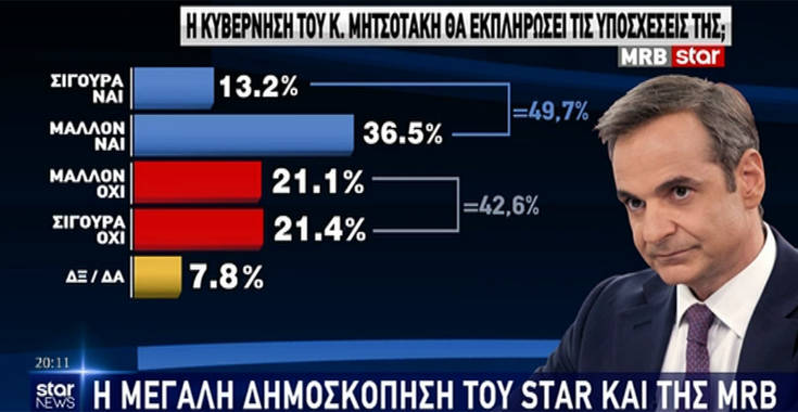 Στο ερώτημα εάν πιστεύετε ότι ο πρωθυπουργός θα κάνει ό,τι έχει υποσχεθεί, ένας στους δύο απάντησε πώς «ναι».