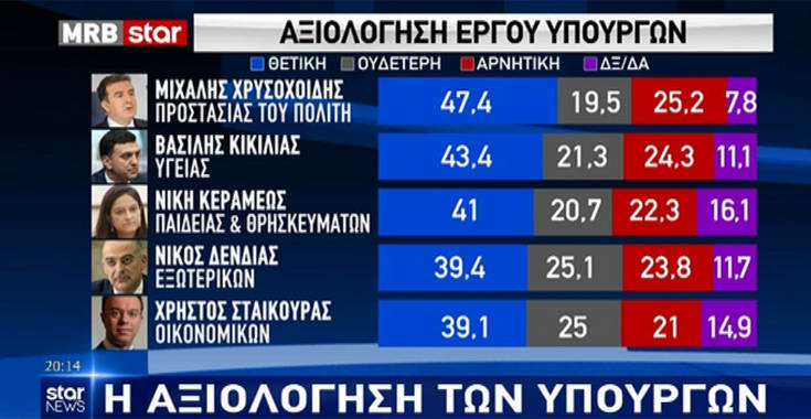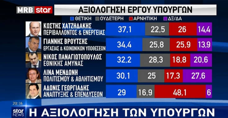 Στην αξιολόγηση του έργου των υπουργών. Με βάση τη θετική και μάλλον θετική γνώμη προηγούνται:
