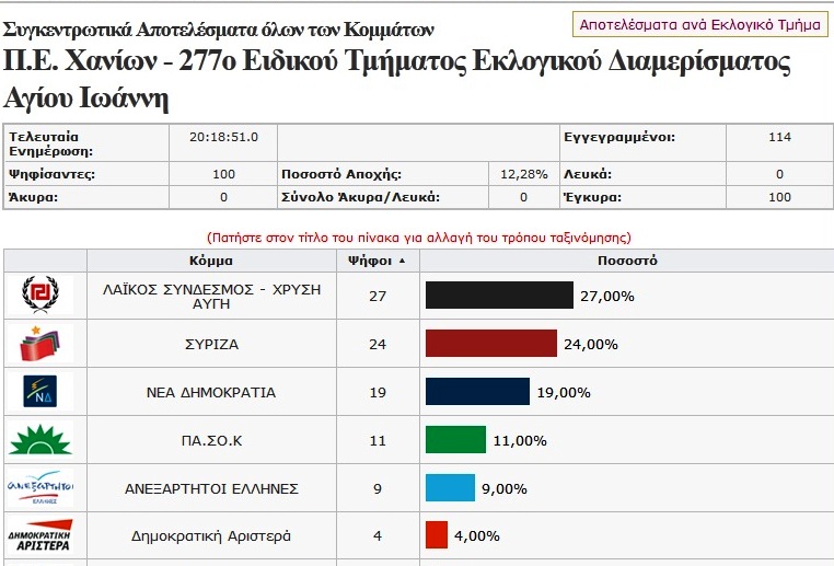 Ιδιαίτερα αποκαλυπτικά είναι τα αποτελέσματα στα εκλογικά τμήματα σε Χανιά , Ηράκλειο και Λασίθι στα οποία ψήφισαν βάση ειδικών εκλογικών καταλόγων, οι αστυνομικοί των διευθύνσεων και οι κρατούμενοι που έχουν δικαίωμα ψήφου, όπως αναφέρει το flashnews.gr.