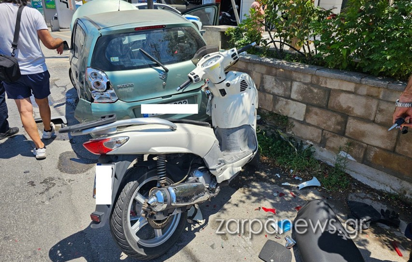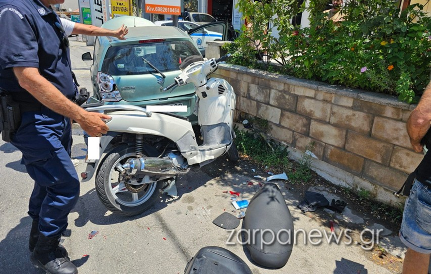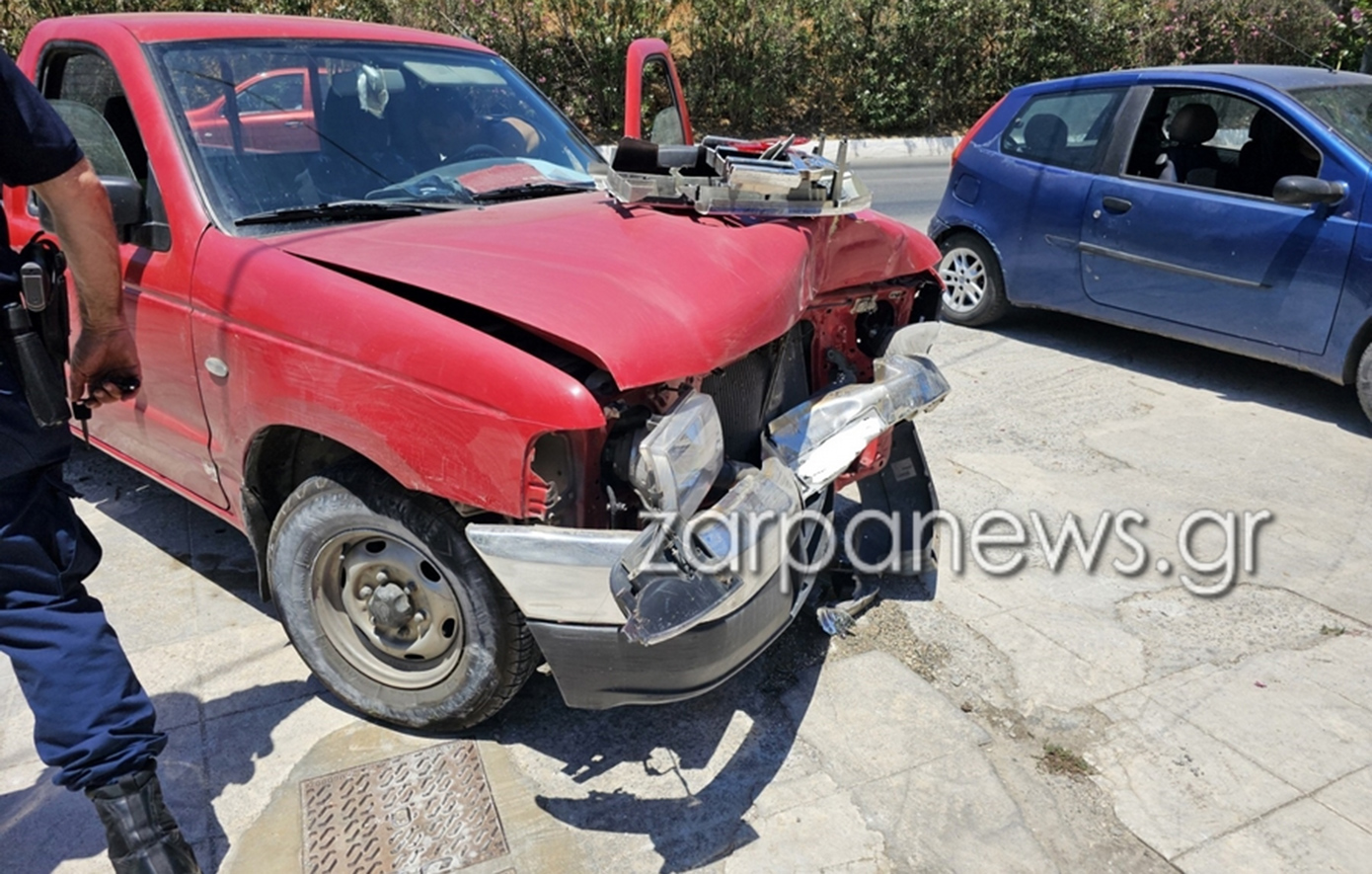 Τροχαίο ατύχημα συνέβη περίπου στις 13:00 το μεσημέρι της Παρασκευής (12/07) στα Χανιά και συγκεκριμένα στη λεωφόρο Καζαντζάκη, στο Βαμβακόπουλο.
