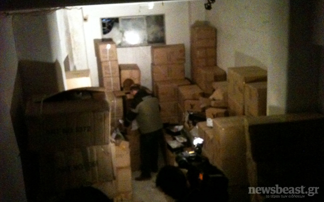 Η κρύπτη οδηγούσε σε υπόγειο χώρο 100 περίπου τετραγωνικών, όπου ήταν στοιβαγμένες οι κούτες με τα προϊόντα απομίμηση, οι οποίες λίγο θα φορτωθούν σε οχήματα προκειμένου να γίνει η καταμέτρηση.