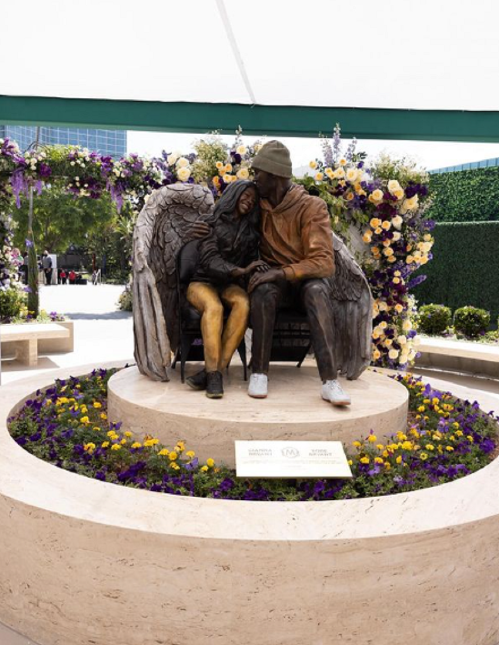 Οι Λος Άντζελες Λέικερς αποκάλυψαν ένα άγαλμα προς τιμήν του Κόμπι Μπράιαντ και της κόρης του Τζιάνα, που σκοτώθηκαν σε συντριβή ελικοπτέρου τον Ιανουάριο του 2020.