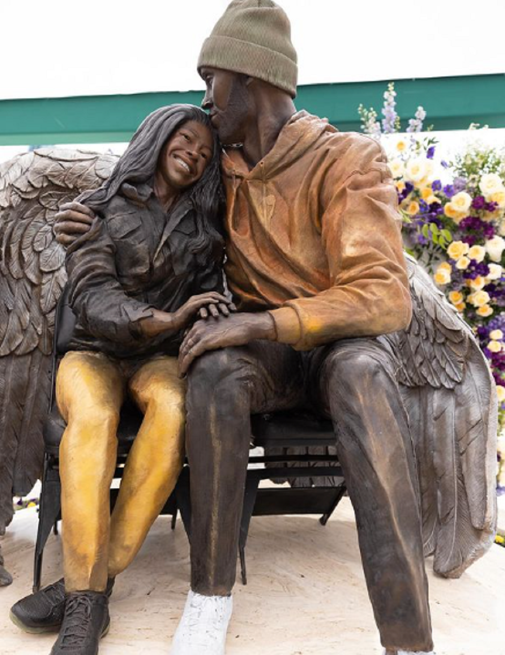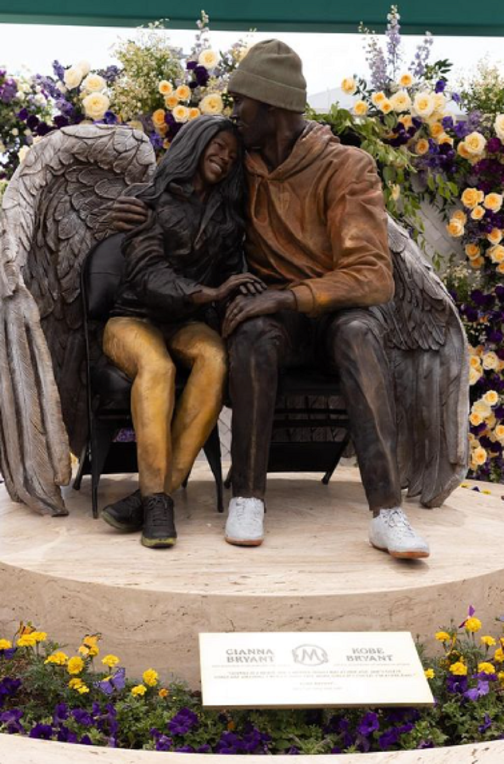Επίσης, εξήγησε την έμπνευση πίσω από τον σχεδιασμό του αγάλματος. «Συγχωνεύσαμε δύο εμβληματικές στιγμές στο γήπεδο του Κόμπι και της Τζίτζι», είπε. «Η Τζιάννα έχει το υπέροχο χαμόγελό της στο πρόσωπό της και ο Κόμπι φιλάει την κορυφή του κεφαλιού της, ενώ φοράει τον σκούφο των Philadelphia Eagles που του χάρισε η Τζίτζι τα Χριστούγεννα. Φοράει επίσης ένα φούτερ του WNBA που φορούσε στο γήπεδο στον αγώνα με την Τζίτζι».