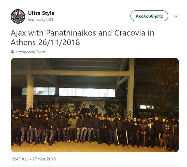 Καταλαβαίνει κανείς ότι είναι τουλάχιστον παράδοξο από κόσμο που φωνάζει με καμάρι πως είναι Εβραίοι, να γίνεται ναζιστικός χαιρετισμός. Ωστόσο, οι οπαδοί του Άγιαξ δεν ήταν μόνοι τους χθες στο ΟΑΚΑ, όπως και τις τελευταίες ώρες παρουσίας τους στην Αθήνα. Μεταξύ αυτών βρίσκονταν και οπαδοί του Παναθηναϊκού, με τους οποίους διατηρούν εξαιρετικές σχέσεις, αλλά και ultras της Κρακόβια.
