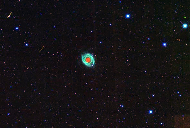 9. Αστεροειδείς απεικονίζονται μαζί με αστέρα που «σβήνει»: Το διαστημικό τηλεσκόπιο της NASA WISE κατέγραψε αυτήν την εικόνα στην οποία δύο αστεροειδείς προβάλλονται κοντά σε έναν αστέρα που βρίσκεται στη φάση θανάτου. Το θερμό αέριο και η σκόνη που απομακρύνονται από το κέντρο του νεφελώματος δημιουργούν αυτήν την όμορφη μπλε απεικόνιση (Το ψυχρότερο αέριο το οποίο βρίσκεται πιο κοντά στο κέντρο δημιουργεί την πορτοκαλί απεικόνιση). Στο κέντρο υπάρχει ο πυρήνας του αστέρα, ο οποίος είναι πολύ θερμός και ονομάζεται λευκός νάνος.