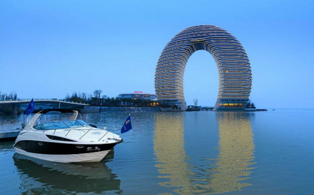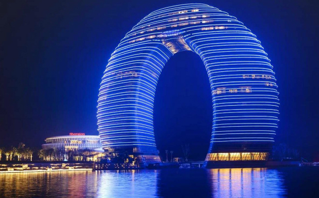 Σχεδιασμένο από τον αρχιτέκτονα Ma Yansong της εταιρείας MAD, το Sheraton Huzhou Hot Springs Resort, αποτελείται από «στρώματα» δαπέδων, που δημιουργούν έναν εντυπωσιακό δακτύλιο στη νότια όχθη της λίμνης Taihu Huzhou.