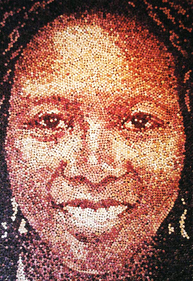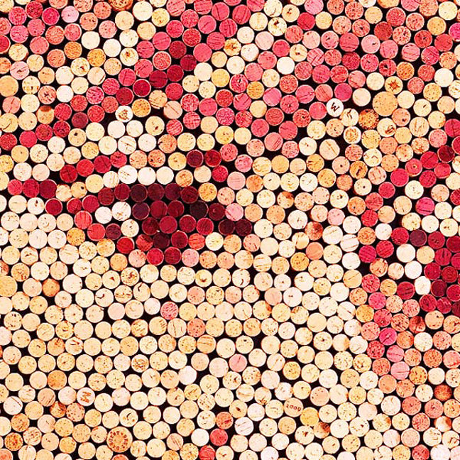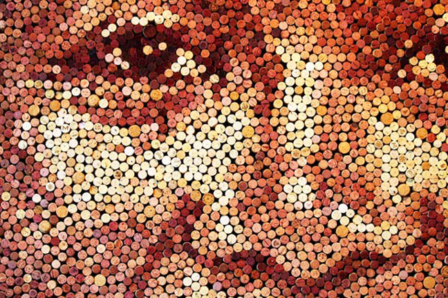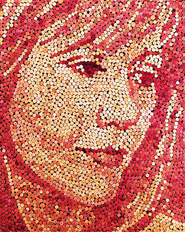 Για την ολοκλήρωση γυναικείων και αντρικών πορτραίτων απαιτούνται χιλιάδες φελλοί και μάλιστα σε διάφορες χρωματικές διαβαθμίσεις, ανάλογα με το χρώμα του κρασιού από το μπουκάλι του οποίου προέρχονται.