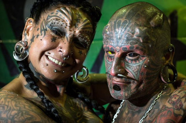 Έχουν υποστεί την απόλυτη μεταμόρφωση αφού εκτός από τα αμέτρητα τατουάζ που έχουν γεμίσει το σώμα και το πρόσωπό τους έχουν επίσης πενήντα piercings, έντεκα εμφυτεύματα σώματος, πέντε οδοντικά εμφυτεύματα και διχαλωτή γλώσσα.