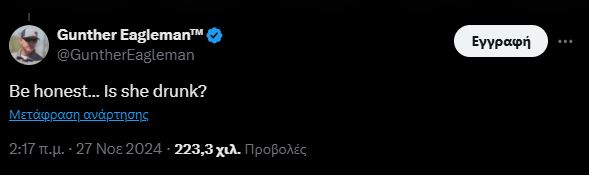Το βίντεο με το μήνυμα της Κάμαλα Χάρις έχει πάνω από 7,5 εκατομμύρια προβολές, με τα περισσότερα σχόλια να αναφέρουν ότι μοιάζει μεθυσμένη και ότι κάτι δεν πάει καλά.