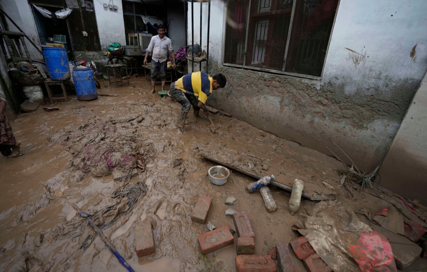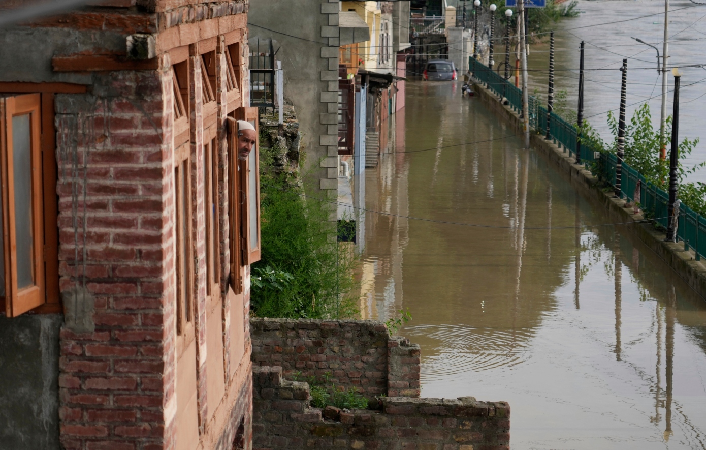 Οι σφοδρές βροχοπτώσεις που έπληξαν αυτήν την περιοχή, την οποία διοικεί η Ινδία, προκάλεσαν χάος, με τα ορμητικά νερά να κατακλύζουν γέφυρες και δρόμους και να προκαλούν πλημμύρες.