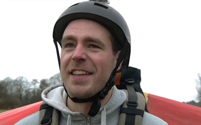 Ο 31χρονος χρησιμοποιεί «φτερά» που ενισχύουν την κίνηση των μυών του με τους αισθητήρες από τη κονσόλα Wii της Nintendo να μεταφέρουν τις κινήσεις του σε «κινητήρες» στα φτερά.