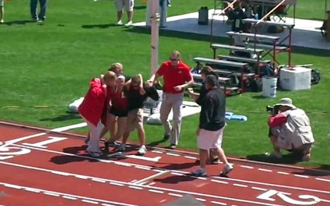 Μάλιστα, την έσπρωξε να περάσει τη γραμμή του τερματισμού πριν την περάσει η ίδια.