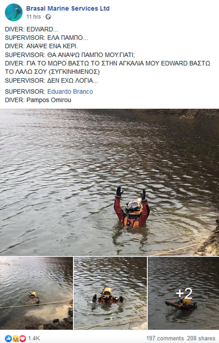 Η εταιρεία, που από την πρώτη στιγμή βρίσκεται δίπλα στην Πυροσβεστική Υπηρεσία στις έρευνες, δημοσίευσε το βράδυ τους διαλόγους του δύτη με τον υπεύθυνο των επιχειρήσεων, καθώς και μερικές φωτογραφίες, όπως αναφέρει ο Φιλελεύθερος της Κύπρου. Οι διάλογοι προκαλούν ρίγη συγκίνησης.