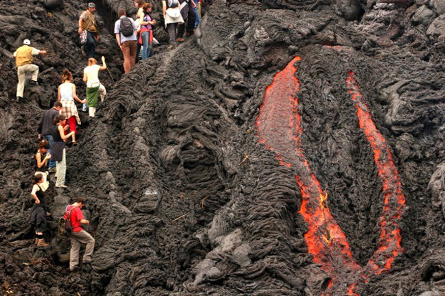 Για τον ορειβάτη που βαρέθηκε τα ίδια και τα ίδια, υπάρχει η επιλογή του συνδυασμού των στοιχείων της φωτιάς και του αέρα σε ένα extreme sport που όμοιό του δεν έχει! Ο απόλυτος προορισμός για αυτούς που αναζητούν την εμπειρία δεν είναι άλλος από το ενεργό Ηφαίστειο Pacaya της Γουατεμάλας, το οποίο σκαρφαλώνει σε ύψος 2,4 χιλιομέτρων και έχει δείξει τη δύναμή του σε τουλάχιστον 23 καταγεγραμμένες φορές από τα χρόνια της ισπανικής αποικιοκρατίας. Ποτάμια λάβας, αφόρητη ζέστη, καπνοί, ακόμα και λιωμένα παπούτσια συνθέτουν ένα εφιαλτικό σκηνικό, ενώ γι’ αυτούς που θέλουν την ηφαιστειακή ορειβασία τους πιο δροσερή, μπορούν να τη συνδυάσουν με πάγο στο Villarica της Χιλής, ο πάγος του οποίου διακόπτεται από τα διάσπαρτα ποτάμια λάβας…